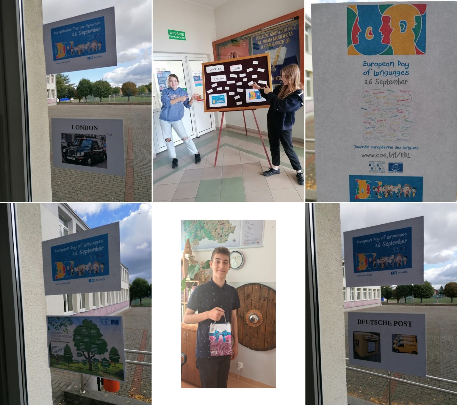 Dnia 24 września świętowaliśmy w naszej szkole Europejski Dzień Języków. Na korytarzach rozbrzmiewały utwory w wielu językach europejskich. Uczniowie wysłuchali krótkiej audycji oraz wzięli udział w quizie. Pytania dotyczyły wiedzy na temat krajów oraz języków europejskich. W rywalizacji zwyciężyły klasy 7b oraz 6b. Przy okazji obchodów Europejskiego Dnia Języków ogłosiliśmy zwycięzcę zeszłorocznego konkursu organizowanego przez Centrum Kształcenia Językowego The Point. Zwycięzcą szkolnego etapu konkursu został uczeń klasy 8b Wiktor Zmysłowski. Gratulujemy!