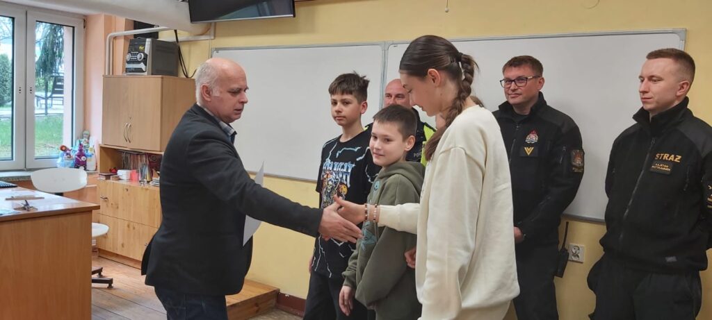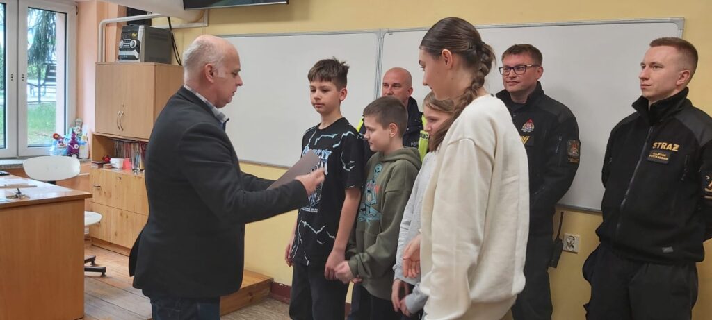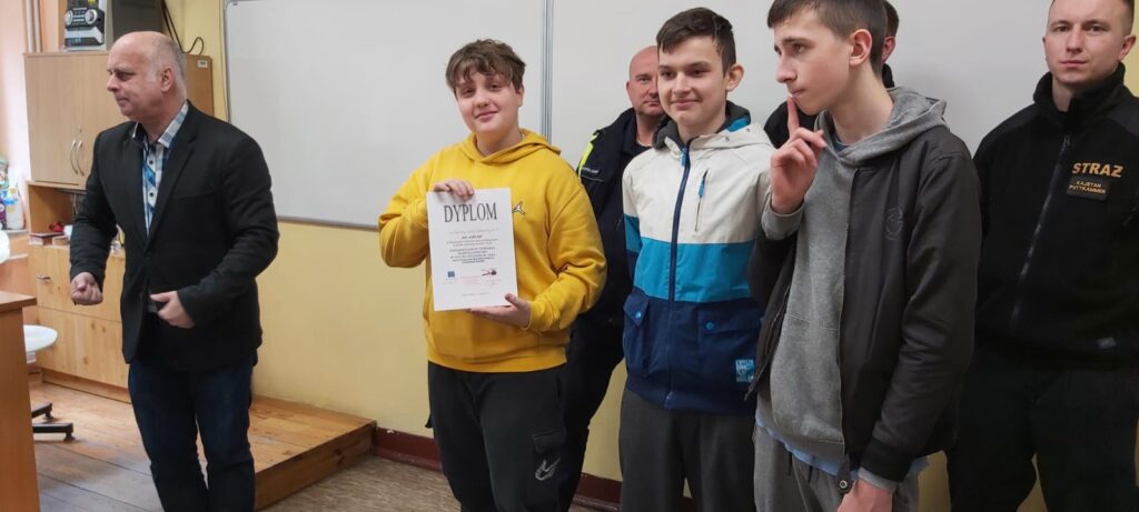Dnia 17.04.2024 odbył się TURNIEJ BEZPIECZEŃSTWA RUCHU DROGOWEGO w PSP6. Naszą szkołę reprezentowały dwie drużyny: starsza grupa w składzie – Oliński Paweł, Wolski Szymon i Wołowiec Adam, grupa ta zajęła 4 miejsce, młodsza drużyna w składzie Toczek Patrycja, Trzaska Laura, Kuryłowicz Alan, Marlon Alan zajęła 3 miejsce. Serdecznie gratulujemy!