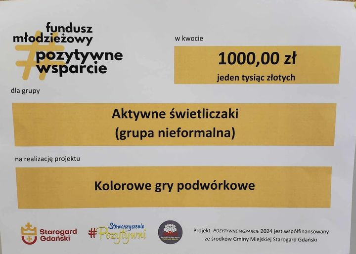 Mamy to! Dzięki wsparciu Stowarzyszenie Pozytywni udało się zrealizować projekt Kolorowych gier podwórkowych. Fundusz młodzieżowy Pozytywne Wsparcie poparło szkolny pomysł na aktywną formę spędzania czasu wolnego. Dodatkowo dziedziniec szkoły nabrał kolorowych barw. Dziękujemy i czekamy na kolejny konkurs.