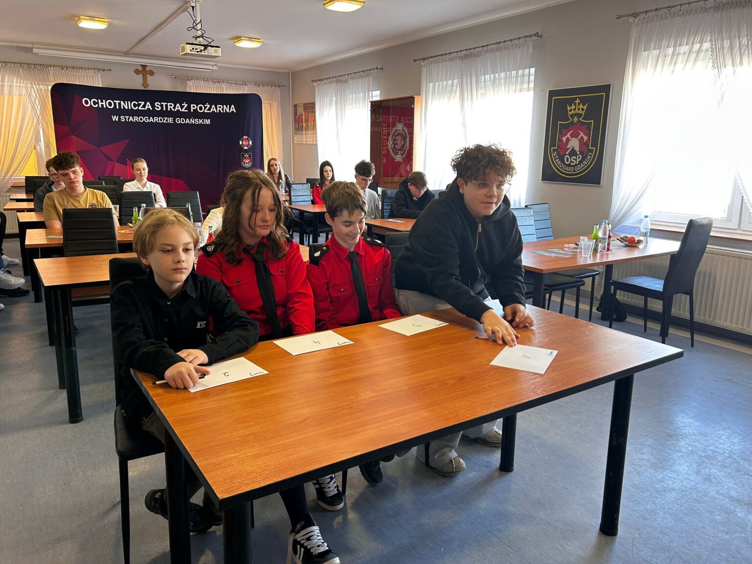Młodzi adepci pożarnictwa oraz pasjonaci ratownictwa i bezpieczeństwa pokazali, że nie boją się żadnych pytań – najpierw test pisemny oraz kilka pytań przed komisją powołaną przez Komendanta Komenda Powiatowa PSP w Starogardzie Gdańskim. A to nasi mistrzowie wiedzy pożarniczej: